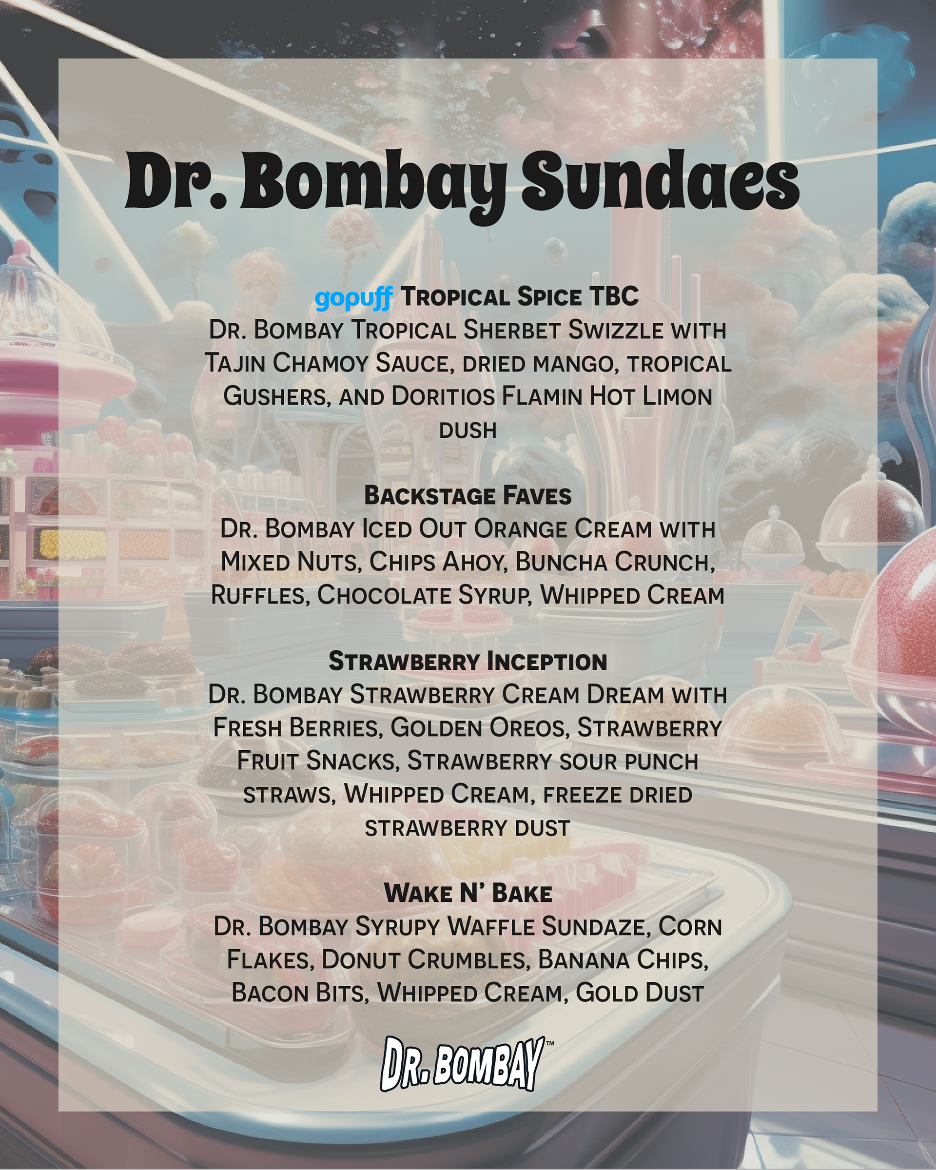 During my time as a freelance designer for We Are The Times, I designed the invitation and menus for Snoop Dogg’s Dr. Bombay Ice Cream Dreams event. The cosmic-inspired invitation featured holographic typography and a dreamlike galaxy background, setting the tone for an immersive experience. The menus carried this playful, nostalgic aesthetic, using bold typography and vibrant layouts to highlight the event’s indulgent flavors.
